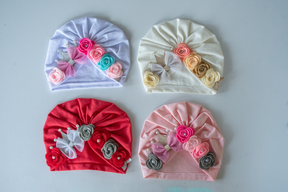 Gorro hecho a mano para niñas elaborado con materiales de alta calidad, delicados, cómodos, con toques de elegancia para hacer lucir a tu bebe radiante.