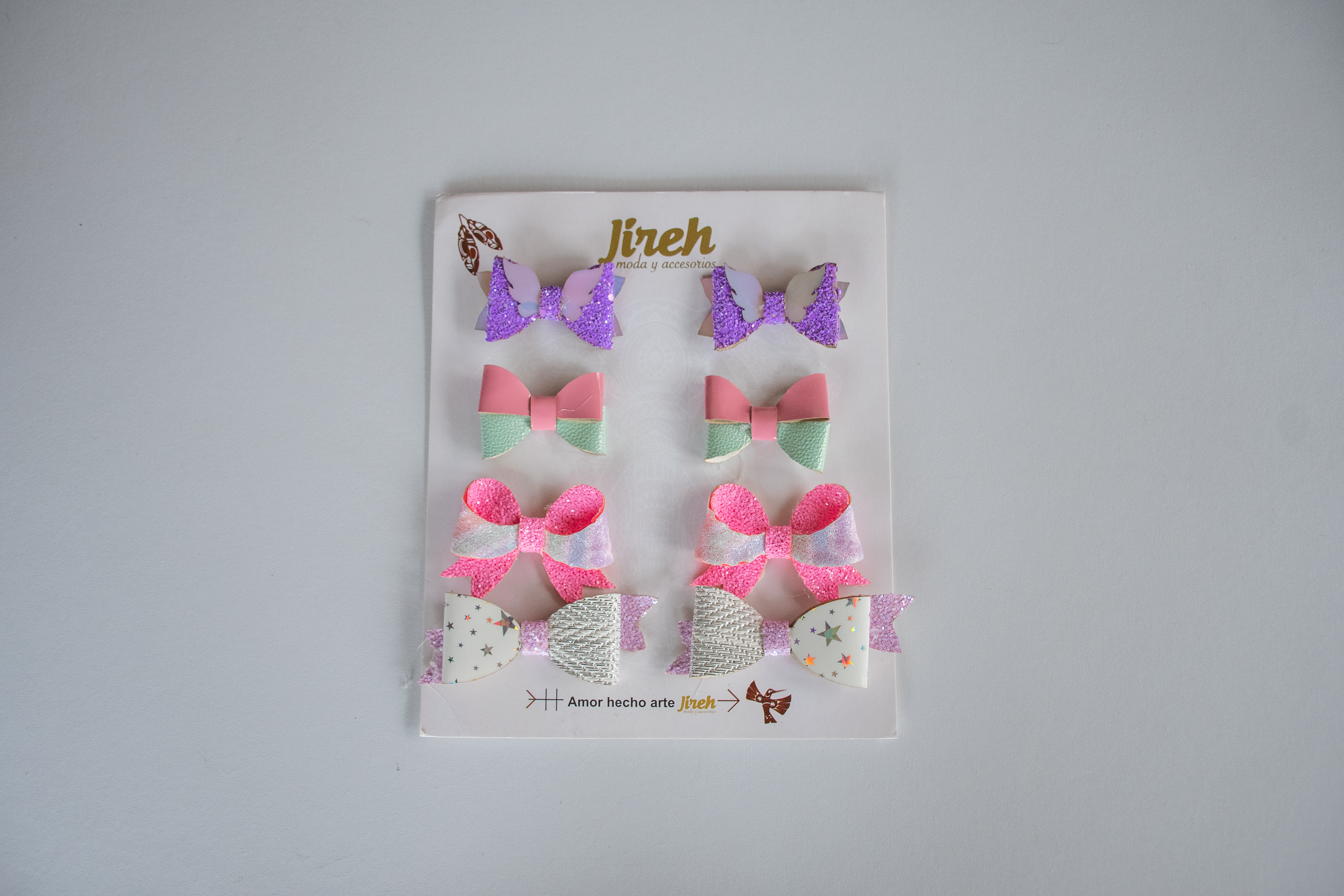 Dale un toque especial a los accesorios de tu bebé con este encantador set de moños. Cada paquete incluye 4 pares (8 piezas en total) con diseños únicos: